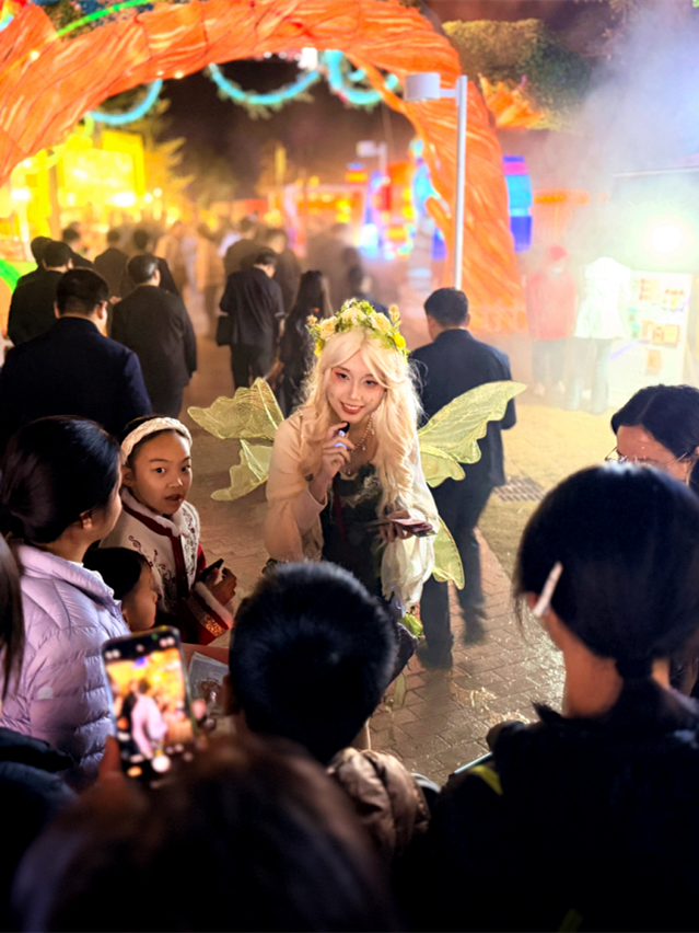 “灯会+NPC+演艺”的融合模式让游客不仅能将流光溢彩的灯景尽收眼底,更能化身为剧情的一部分,获得多维度的感官冲击与深度参与。